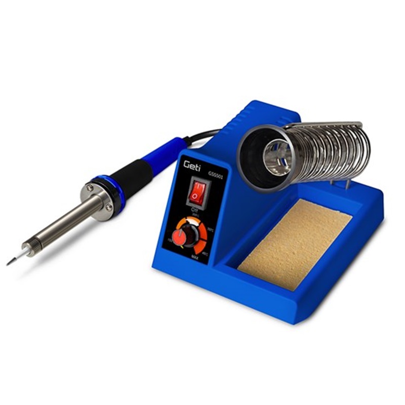 Estación de soldadura análógica Geti GSS501 de 48W temperatura regulable de 150ºC a 480ºC con soporte con bola de alambre y esponja de limpieza.