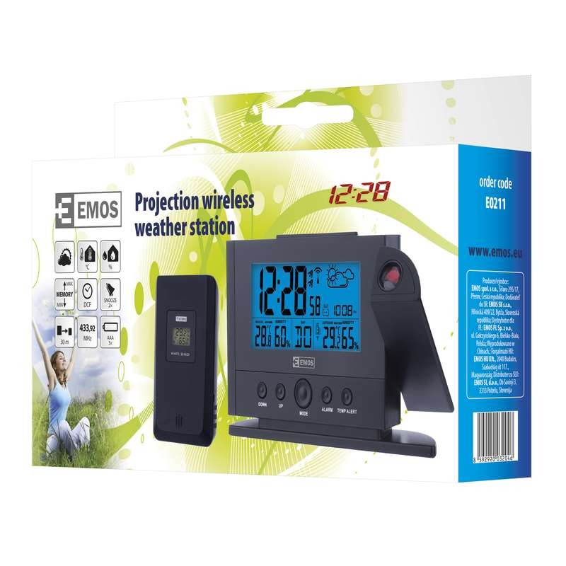 Estación Meteorológica EMOS E0211 con sensor inalámbrico exterior y funciones de reloj alarma, calendario…