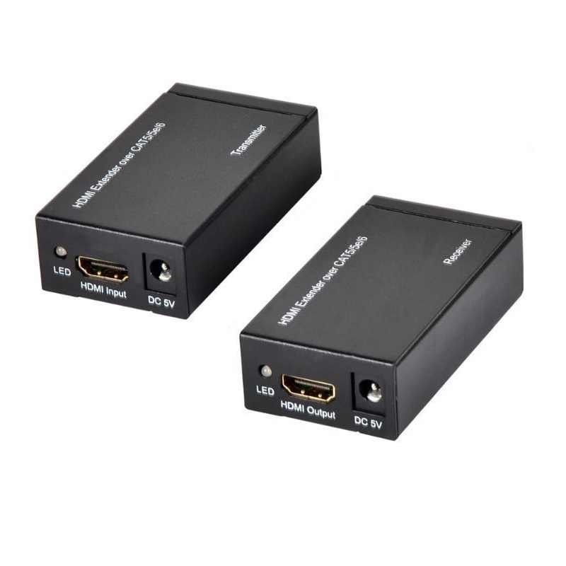 Extensor de audio y vídeo HDMI sobre Cat5/Cat5e/Cat6, permite extender la señal HDMI hasta 60 metros para 1080p.