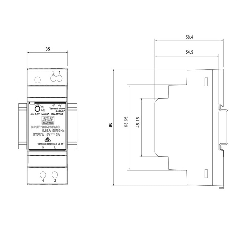Fuente de alimentación conmutada AC Mean Well HDR-30-5 de 1 salida DC 5V, 3A, 15W, para montaje en carril din con el accesorio KDIN