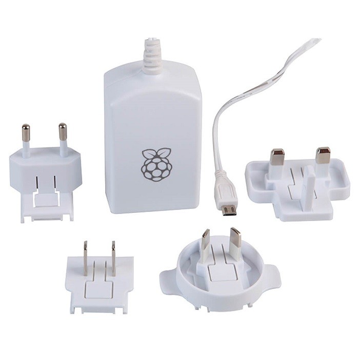 Esta fuente de alimentación universal oficial para Raspberry Pi con cable y conector MicroUSB integrados se suministra con cuatro adaptadores intercambiables que permiten su uso en todo el mundo. Adecuada para el modelo Raspberry Pi A, A+, B, B+ y la placa Compute de E/S