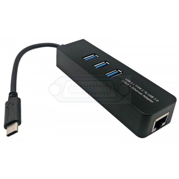Hub USB Tipo-C 3.1 a 3x USB Tipo-A 3.0 + RJ45 Ethernet Gigabit