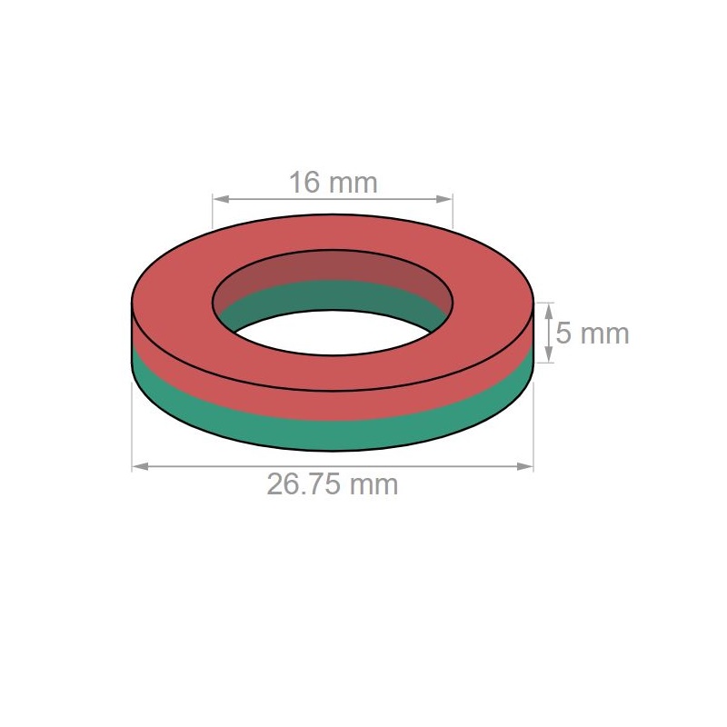Este aro magnético con un diámetro exterior de 27 mm, un diámetro interior de 16 mm y un alto de 5 mm tiene una fuerza de sujeción de unos 11 kg. Se usa en electrónica de consumo, tecnología de motores y sensores y en manualidades o proyectos DIY de todo tipo.
