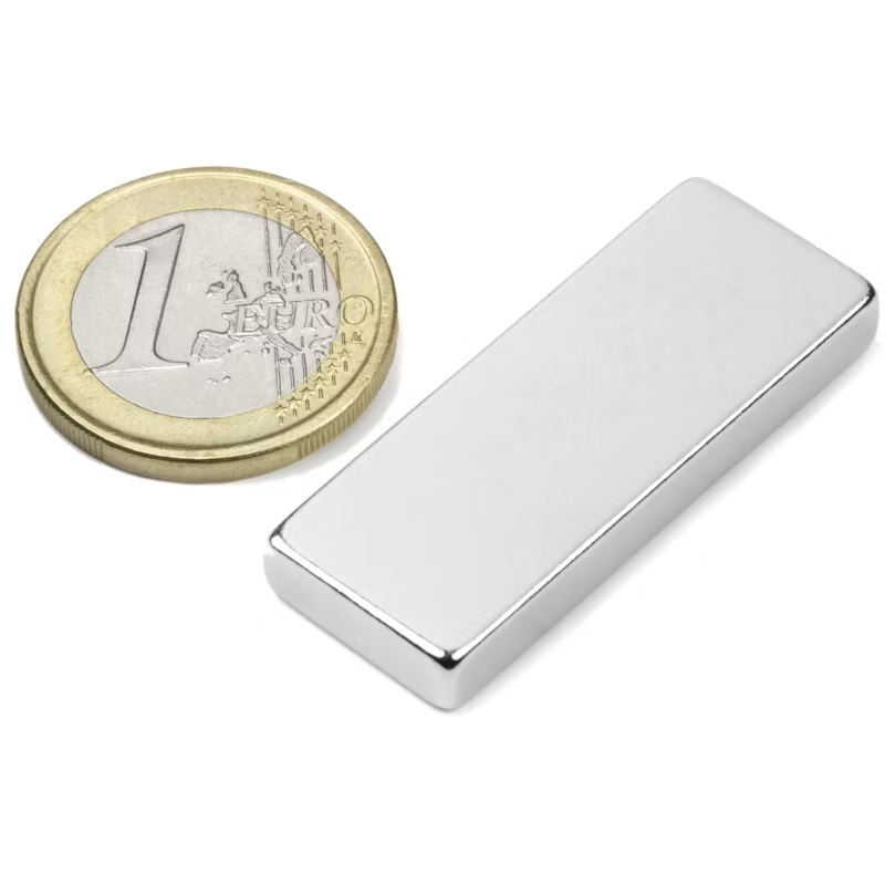 Este bloque magnético de 40 x 15 x 5 mm tiene, para su tamaño, una impresionante fuerza de sujeción de aprox. 8 kg. Se usa en la industria o en manualidades y proyectos DIY de todo tipo.