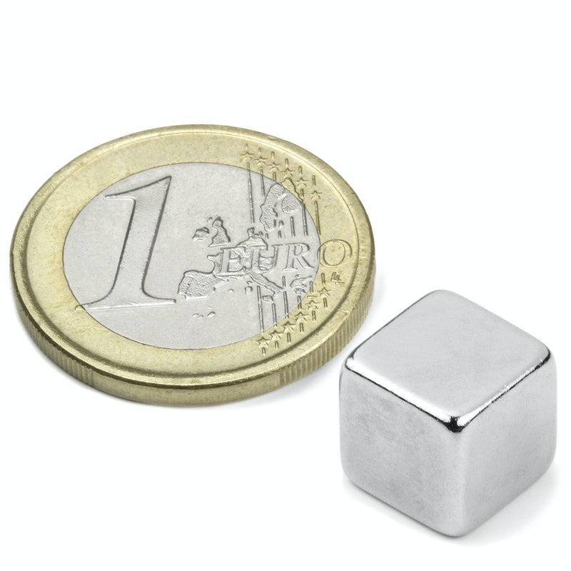 Cubo magnético de neodimio N42 niquelado 10mm, sujeta aprox. 3,8 kg.