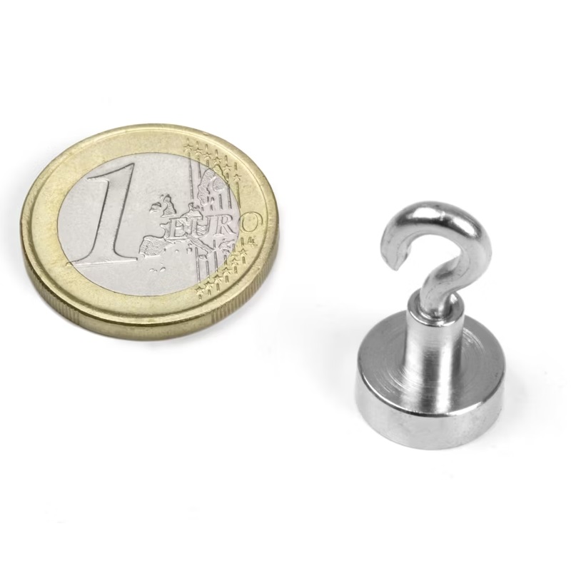 Gancho magnético de neodimio N38 niquelado Ø 13 mm, sujeta aprox. 5 kg. Rosca M3