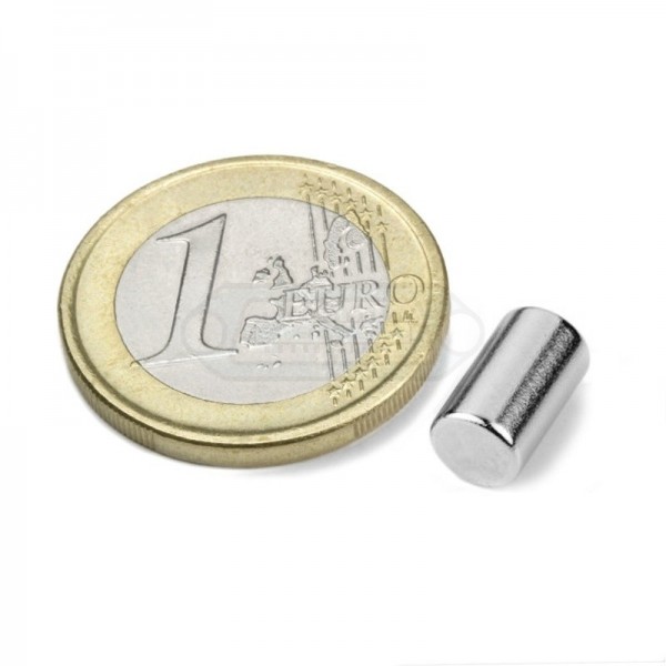 Cilindro magnético de neodimio N40 niquelado Ø 6 mm, 10 mm de alto, sujeta aprox. 1,4 kg.