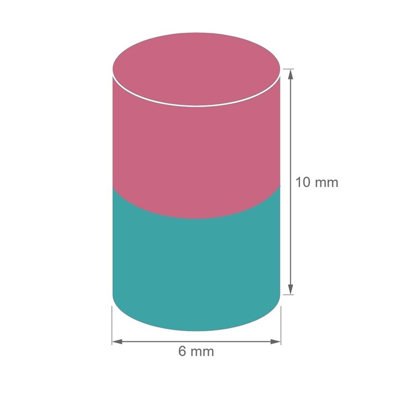Cilindro magnético de neodimio N40 niquelado Ø 6 mm, 10 mm de alto, sujeta aprox. 1,4 kg.