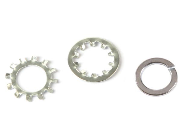 Este juego incluye arandelas de bloqueo, arandelas de diente externo y arandelas de diente interno.