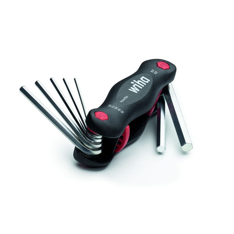 Se acabó el inconveniente de aplastarse los dedos. El juego de llaves Allen PocketStar convence por su manipulación óptima y su gran utilidad que se traduce en una gran variedad de detalles prácticos. Las siete llaves Allen se guardan de forma compacta en un soporte plegable manejable. El botón de apertura inteligente permite realizar una elección sencilla del tamaño de llave deseado. Entre la posición de 90 ° y de 270 ° se pueden escoger tantas posiciones de trabajo como se desee, en función de la tarea de atornillado. En la posición de 180 °, la herramienta se convierte, por ejemplo, en un destornillador. Si la llave se posiciona en el tope de 270 °, el soporte plegable se convierte en una herramienta con un brazo de palanca práctico para alcanzar pares de apriete elevados. También se ha solucionado de manera fantástica la demanda de los usuarios de que siempre se puede mover solo una única llave a la posición de trabajo. De este modo, en el PocketStar se suprime la acción molesta de tener que desplazar hacia atrás las llaves Allen que no se utilizan.