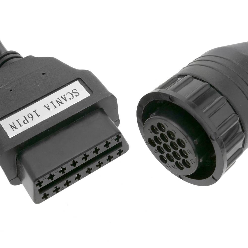 Se trata de un pequeño adaptador con cable de 15cm que permite conectar un OBD II estándar al conector específico del camión.