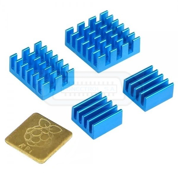 Kit de disipadores de calor adhesivos en aluminio azul para refrigeración de placas Raspberry Pi y Arduino.