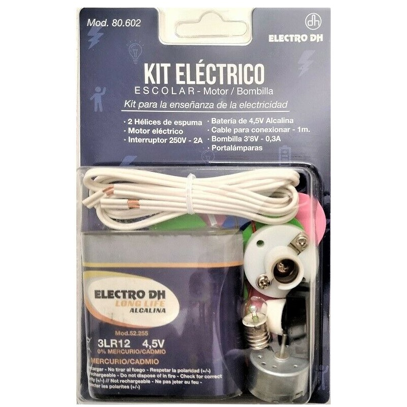 Kit escolar eléctrico con bombilla, interruptor y motor DH 80.602