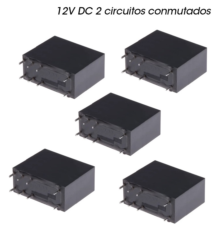 Kit de 5 Relés 12V DC 2 circuitos conmutados 250VAC 5A Cebek C-4012