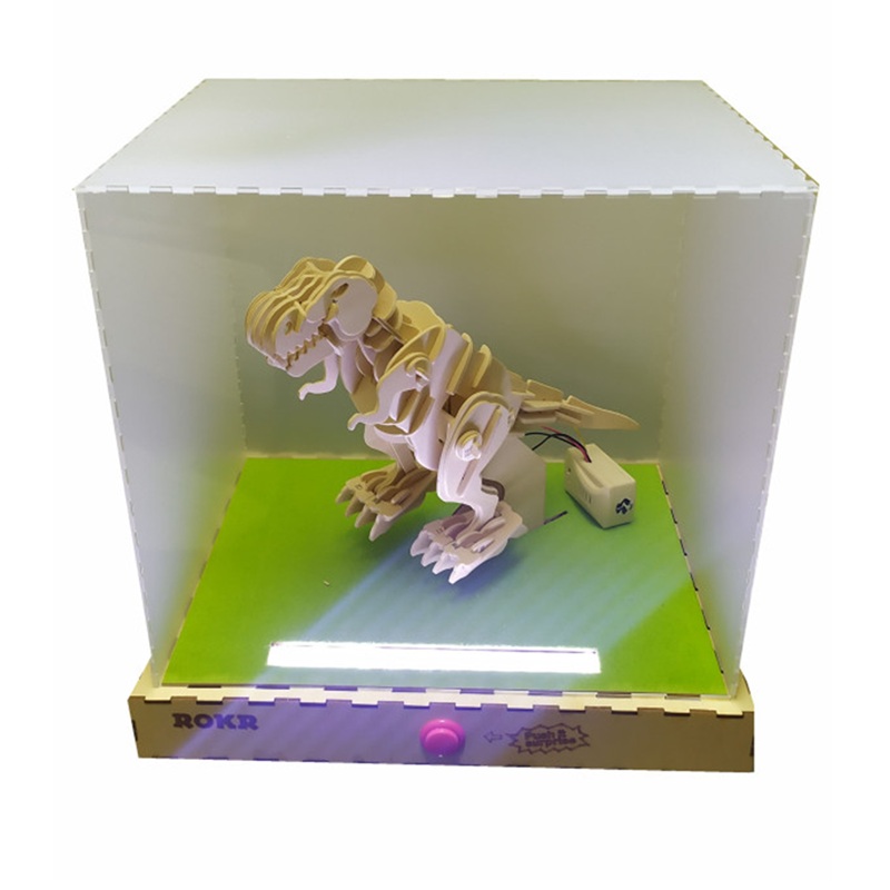 Kit Robot Dino Tyranosaurus REX de madera CEBEKIT C-9907, con sensor de sonido, camina y ataca, se activa por voz