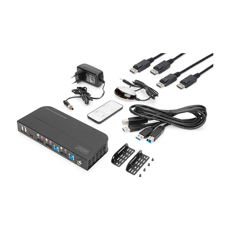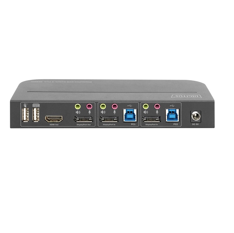 KVM Switch 2 Puertos DP SALIDA HDMI/DisplayPort Dual Screen 4K UHD Digitus DS-12850 con puertos USB y audio, color negro