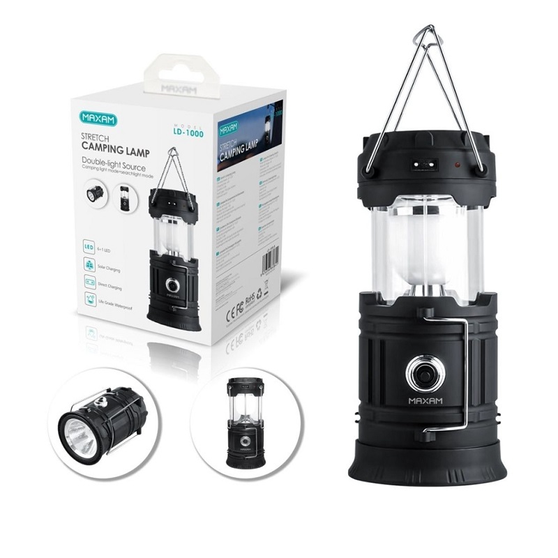 Lámpara de campamento 6+1 LED Maxam LD-1000 recargable con carga solar o directa