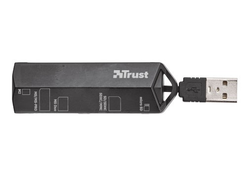 Lector de tarjetas de memoria de alta velocidad y diseño ultra compacto, que se lleva fácilmente a todas partes. Compatible con todas las tarjetas de memoria compactas de uso más común en teléfonos móviles y cámaras digitales.