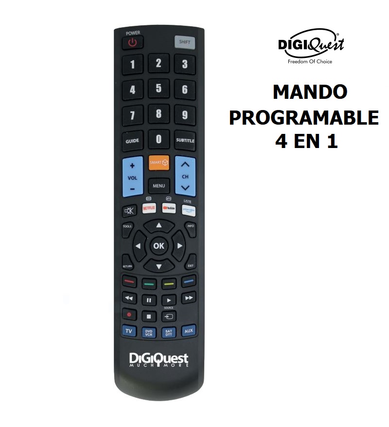 Mando a distancia Universal 4 en 1 programable Digiquest TLC143 para TV, TDT, DVD, VCR, HIFI etc.