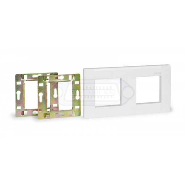 Marco y 2 chasis para instalación en 2 cajas estándar europeas. 2 ventanas para 2 paneles de conexión.