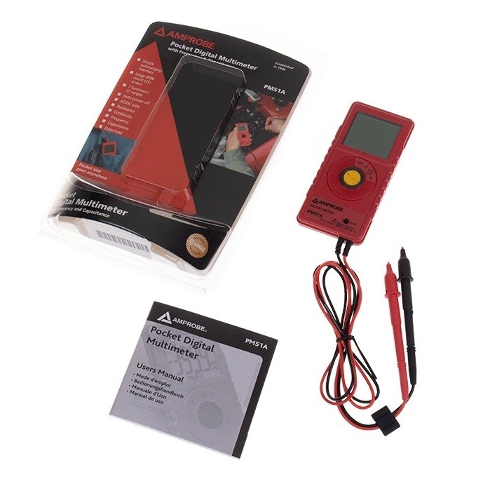 Multímetro digital de bolsillo Amprobe PM51A 600V AC/DC con frecuencia y capacitancia.