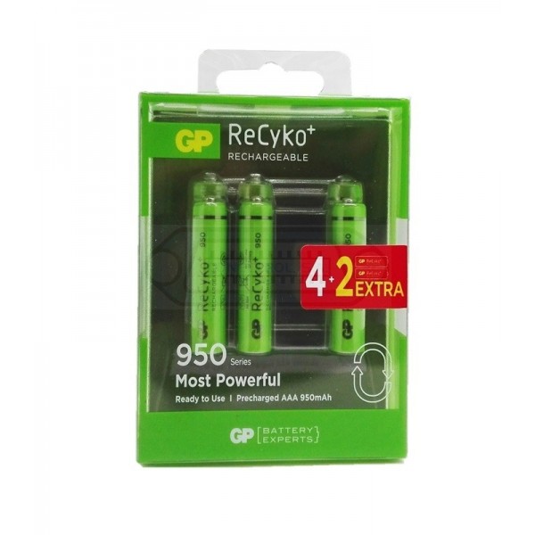 Pack de 6 baterías (4+2 gratis) recargables AAA GP ReCyko+ 950 mAh
