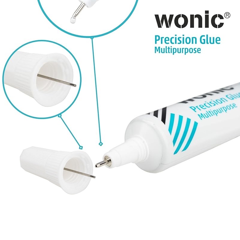 Las propiedades del pegamento WONIC Precision Glue junto a la fina punta metálica le convierten en una herramienta perfecta para trabajos de precisión, ofreciendo facilidad de uso, limpieza y acabados profesionales.