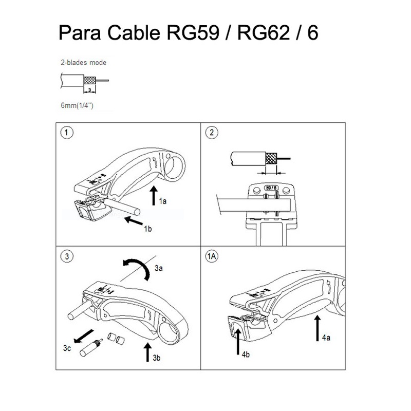 Dos cuchillas ajustables le permiten pelar varios tipos de cable coaxial corte 6.4mm