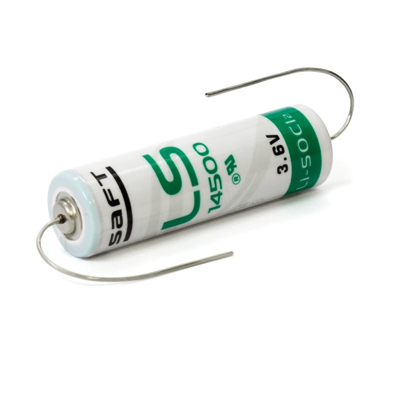 Pila de litio – Cloruro de Tionilo tipo AA (R06) de 3.6V 2600mAh SAFT LS14500CNA con terminales axiales, no recargable.