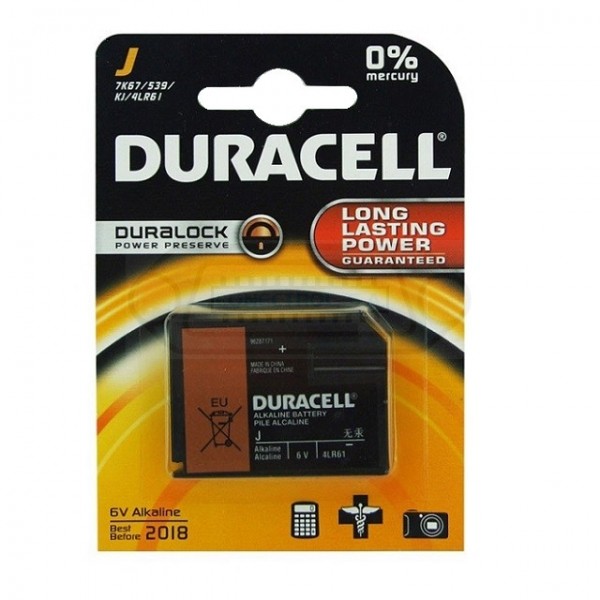 Pila Duracell J (7K67) Alcalina 6V paquete de 1 pila.Para precios de distribución por cantidades solicite presupuesto previo
