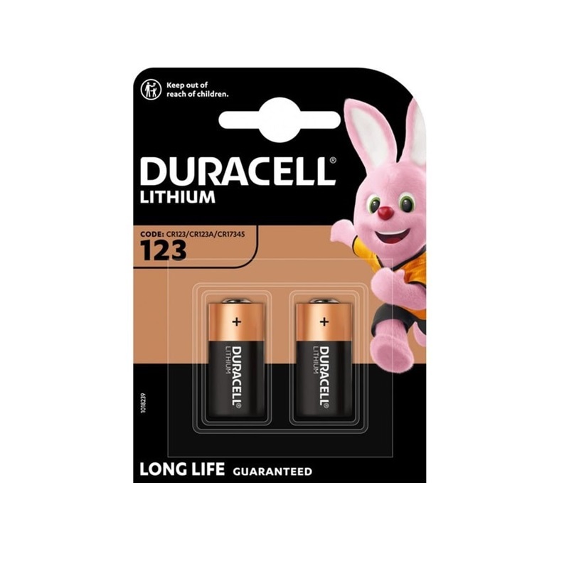 Pila especial Duracell CR123A Litio de 3V en pack de 2 unidades