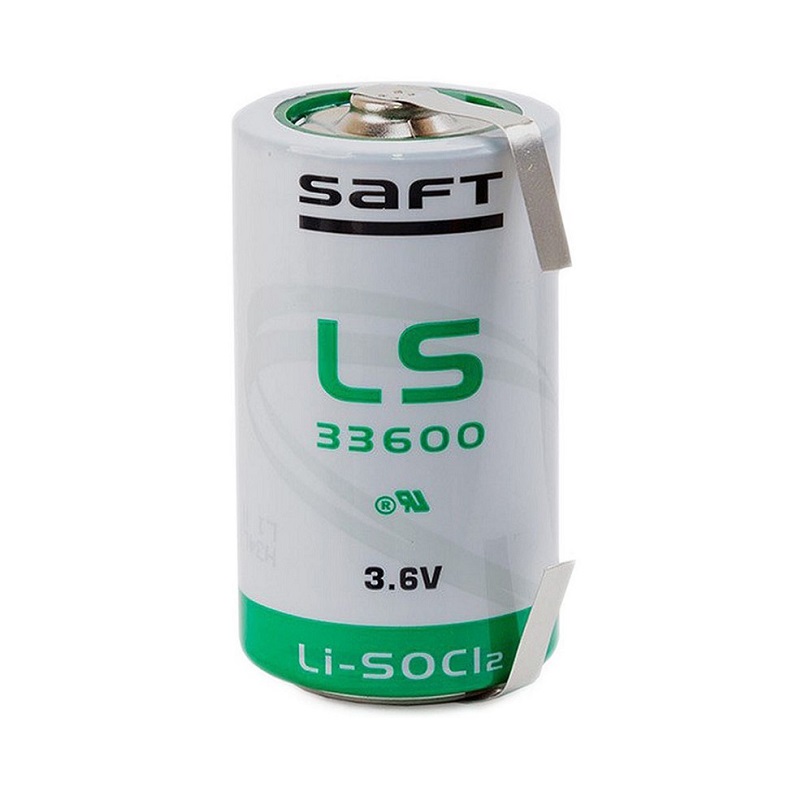 Pila de Litio – Cloruro de Tionilo tipo D (R20) de 3,6V 17.000mAh SAFT LS33600 con terminales axiales tipo lengueta para soldar, no recargable.