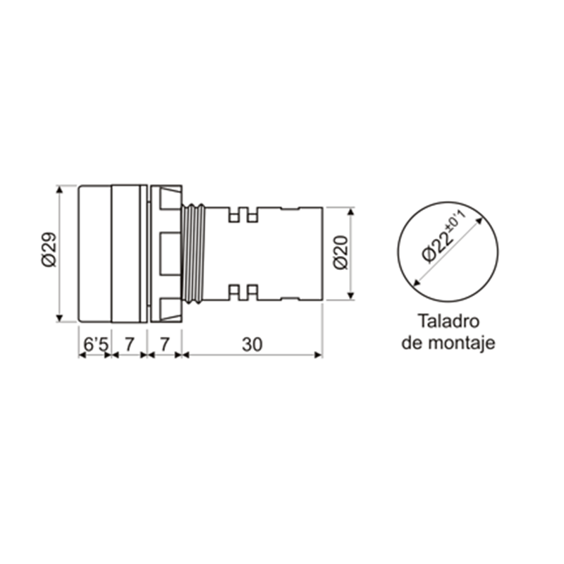 Pilotos alto brillo azul 230V AC con LED multichip diametro taladro de 22mm.