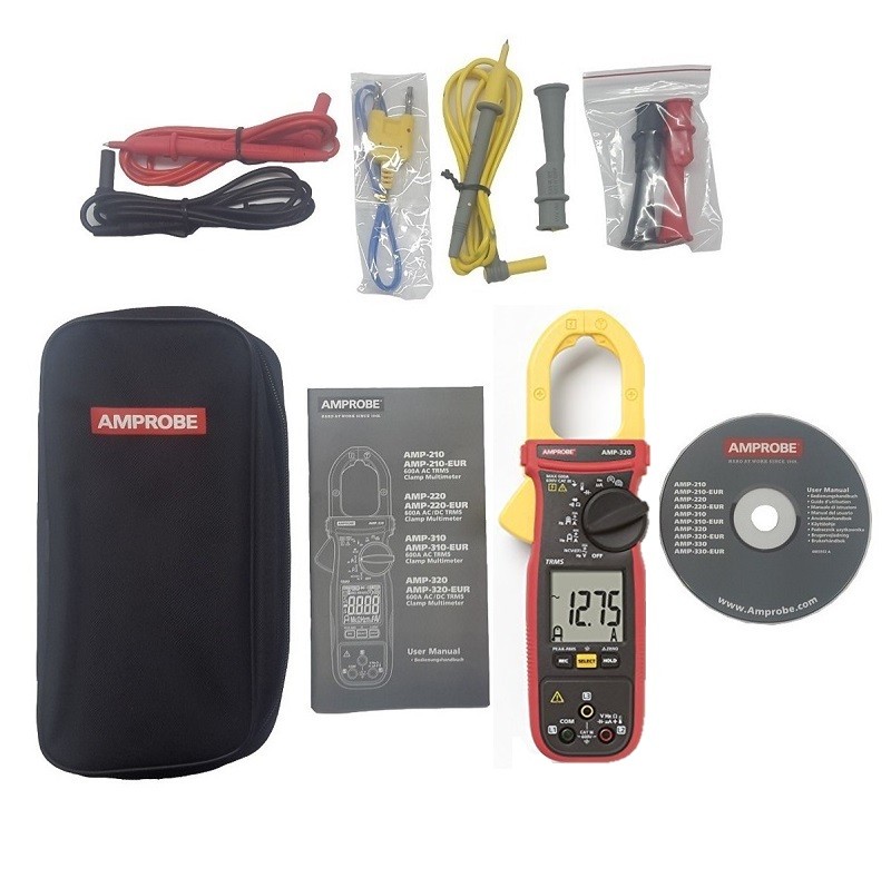 Pinza amperimétrica Amperimétrica AMP-320 600A AC / DC con detección True-RMS para el mantenimiento del motor eléctrico.