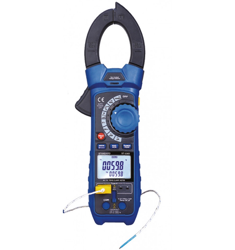 Pinza amperimétrica digital Bluetooth AC/DC 600V 1000A con mordaza de 48mm y conexión entrada dual tipo K