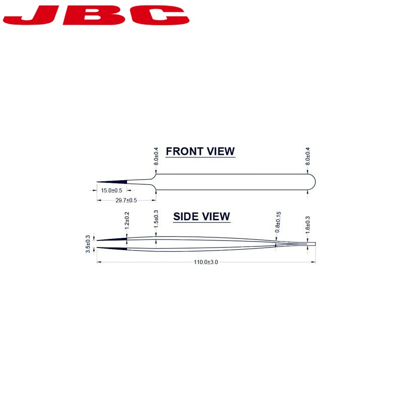 Pinzas de punta extrafinas JBC 5 SA para facilitar el campo de visión cuando se manejan componentes SMD