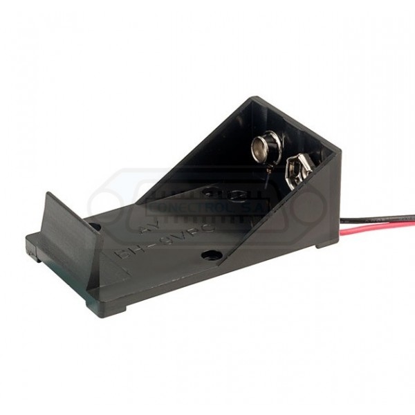 Portapilas para 1 pila de 9V en soporte abierto de color negro, con cable de 2 hilos en 15 centímetros