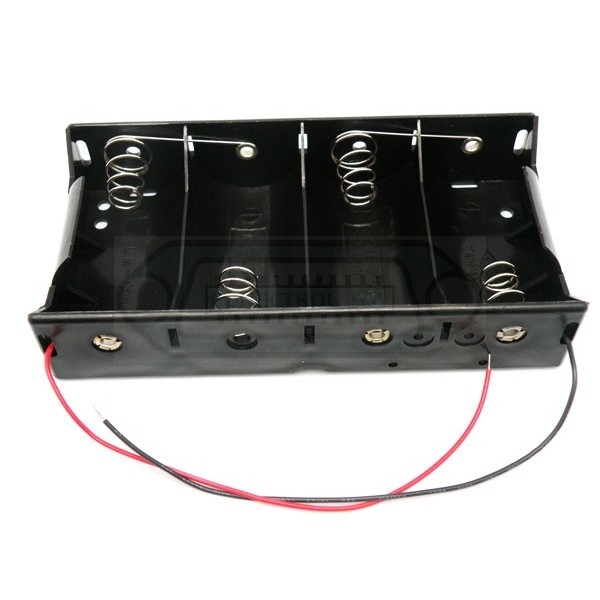 Portapilas para 4 pilas R20 (D) de 1.5V plano con cable.