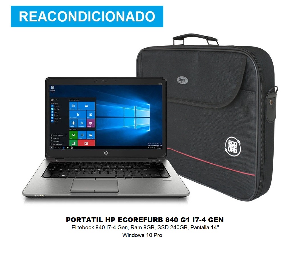 Portátil Ecorefurb HP Elitebook 840 G1 i7-4 Gen 8 GB 256 SSD 14″ Windows 10 Pro con maletín