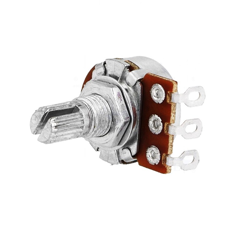 Potenciómetro de ajuste logarítmico de 500K Mono para panel con eje mini metálico dentado de 6mm. sin interruptor