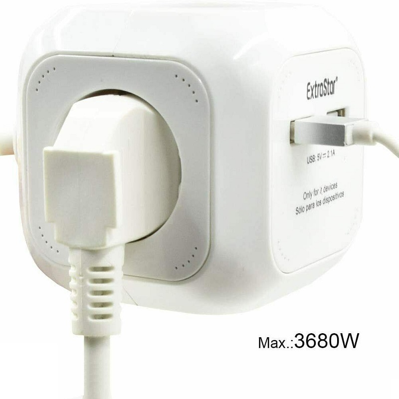 PowerCube con 4 enchufes tipo europeo de salida y 2 puertos USB KF-GSB-04U ExtraStar 3680W blanco.