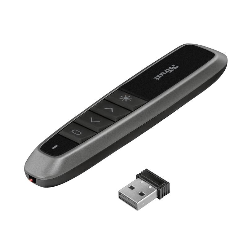 Presentador inalámbrico Trust BATO 23251 con láser de color rojo para controlar presentaciones.