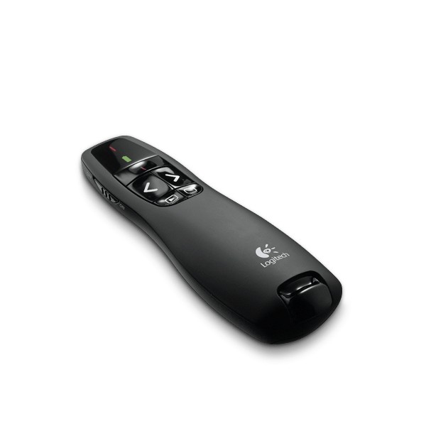 Presentador inalámbrico Logitech R400 con controles intuitivos, puntero láser rojo y radio de acción de 15 metros. No requiere software
