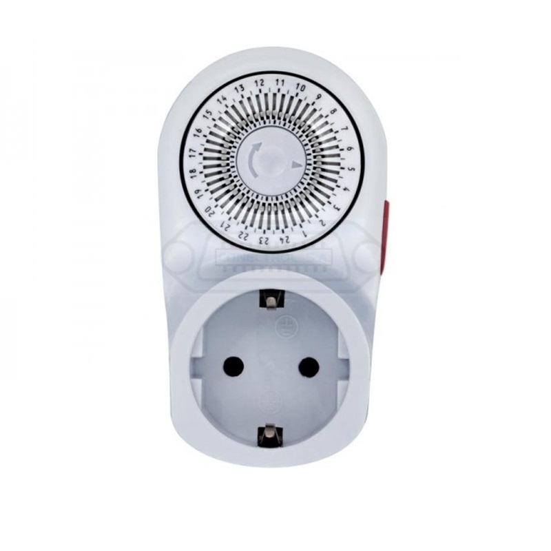Programador temporizador analógico diario 24 horas, ideal para aquellos casos que se requiera una conexión o desconexión de un aparato periódicamente.