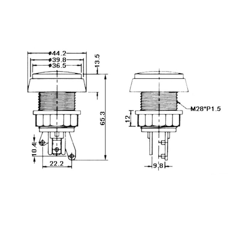 Pulsador arcade momentáneo compatible con orificios de 28 mm de diámetro.