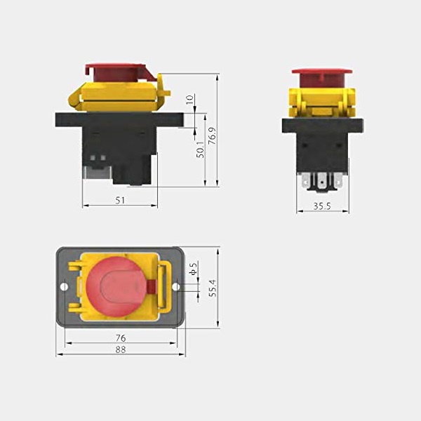 Interruptor pulsador electroimán de inicio / parada de emergencia KEDU KJD18 IP54, 400V con liberación de voltaje cero para taladradoras y herramientas eléctricas estacionarias.