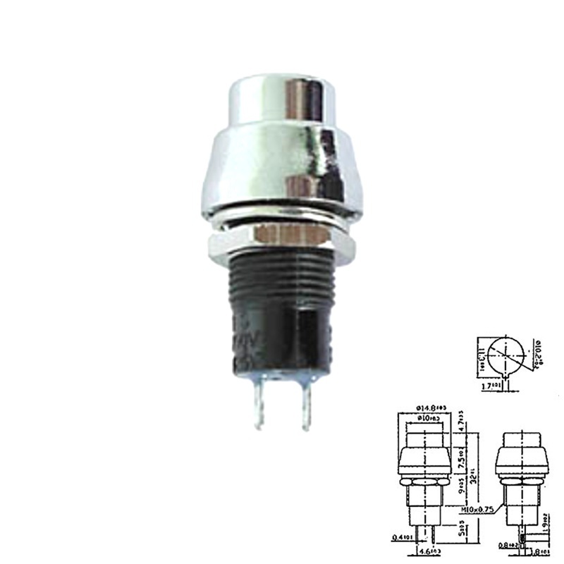 Portada Tienda Componentes Electrónicos Interruptores / Pulsadores De Pulsar PULSADOR REDONDO Ø14.8mm 1A/250V OFF-(ON) 1Co CHASIS PLATEADO