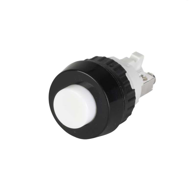 Pulsador RAFI redondo 1.10.001.001/0205 SPST OFF-ON NO (Normalmente Abierto) con rosca de Ø15.2 mm, botón en color blanco