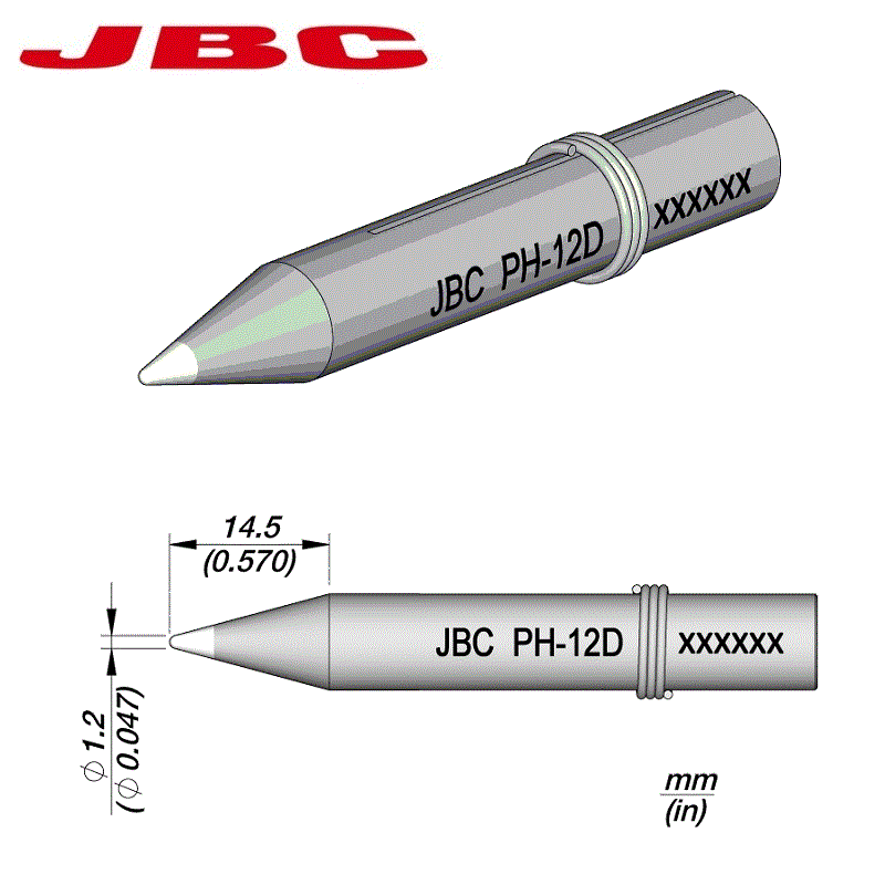 Punta de soldadura JBC PH-12D de larga duración, diametro 1.2mm. para soldadores JBC 30ST / 40ST / SL2020 e IN2100