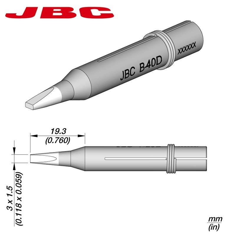 Punta de soldadura JBC B-40D de larga duración, punta plana 3 x 1.5mm, para soldador JBC 14S y JBC 14ST